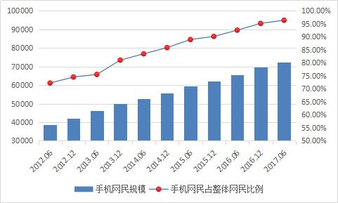 中國手機(jī)網(wǎng)民規(guī)模及其占網(wǎng)民比例