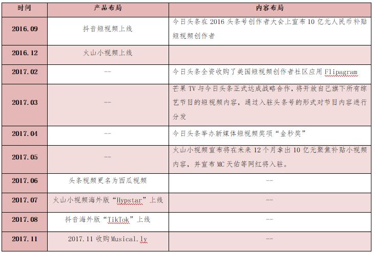 2016年9月20日,今日頭條正式宣布入局短視頻,創(chuàng)始人張一鳴也公開表示短視頻將是內(nèi)容創(chuàng)業(yè)的下一個(gè)風(fēng)口,隨后今日頭條開始全面布局短視頻。