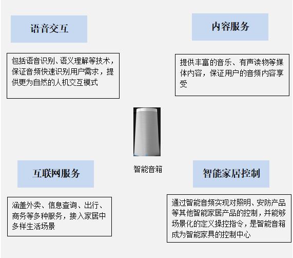 智能音箱是在傳統(tǒng)音箱基礎(chǔ)上增加了智能化功能,這功能體現(xiàn)在兩方面:一是技術(shù)上具備WiFi鏈接可語音交互;二是功能上可提供音樂、有聲讀物等內(nèi)容服務(wù)、互聯(lián)網(wǎng)服務(wù)以及場景化智能家居控制能力。