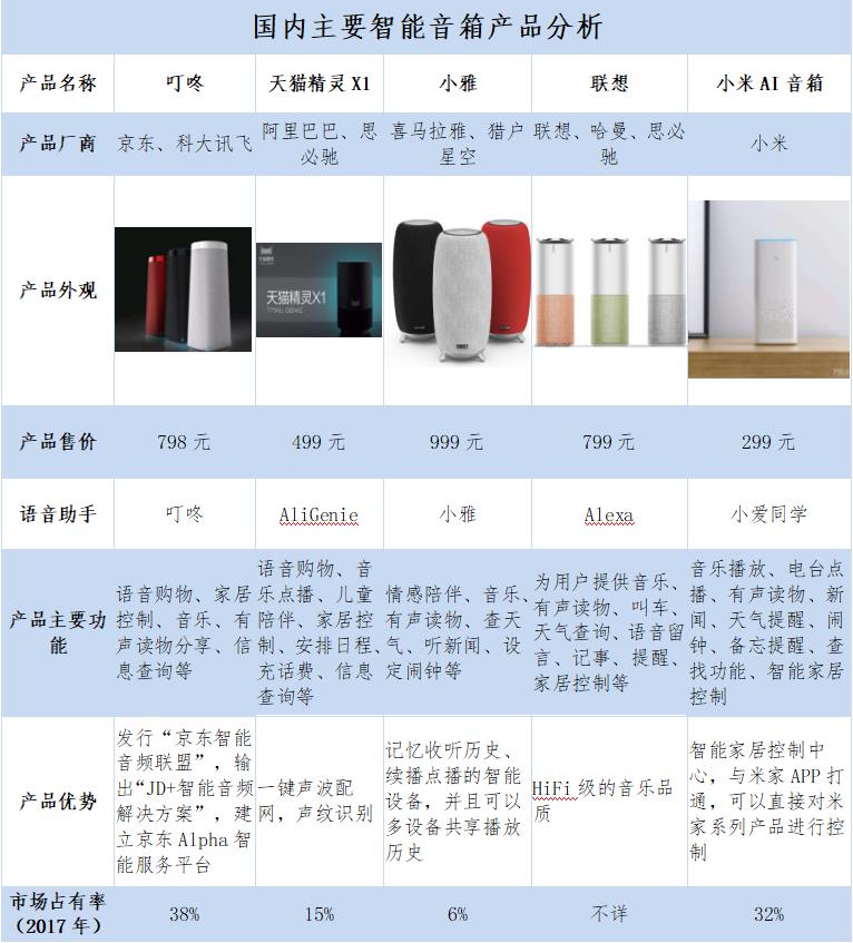 國內(nèi)主要智能音箱產(chǎn)品分析