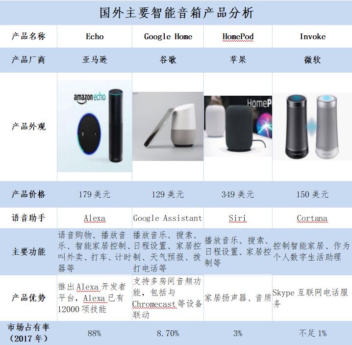 國外主要智能音箱產(chǎn)品分析