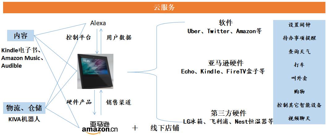 1.亞馬遜較早進(jìn)入智能家居領(lǐng)域,通過Alexa語音平臺(tái),接入其他智能硬件及第三方服務(wù),已形成一定的智能家居體系