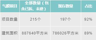 圖表3 氣膜建筑項目數(shù)量及建筑面積