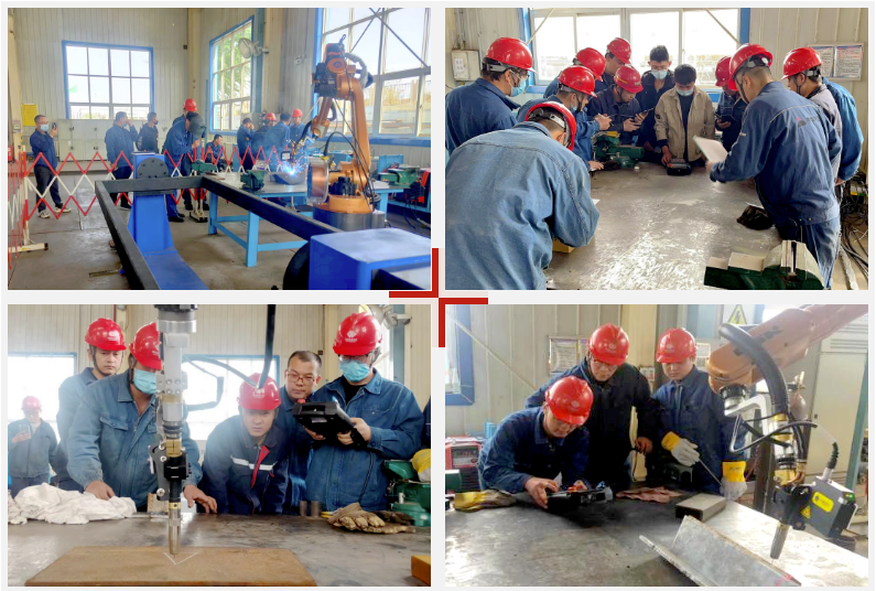 針對焊接機(jī)器人的具體操作,信息科技公司派遣專業(yè)技術(shù)人員前往現(xiàn)場開展了詳細(xì)的講解和演示。技術(shù)人員對GR-C操作系統(tǒng)、各類參數(shù)基本設(shè)置、程序編輯示例、程序管理與指令編輯、輸入輸出及PLC功能、程序加載及功能檢測、焊接編程應(yīng)用及安全操作等事項進(jìn)行了一一說明,切實提高了操作人員對不同應(yīng)用場景下各種編程及操作的掌握程度,同時有力保障了操作人員對整體智能焊接系統(tǒng)的操作安全,為后期焊接機(jī)器人在實際工作中的靈活應(yīng)用打下堅實基礎(chǔ)。